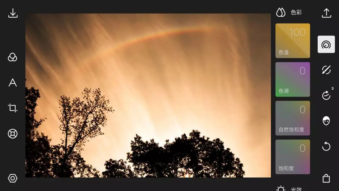 然后提高色温值到+100,提高色温可以让画面偏向于暖色;降低色温可以让画面偏向于冷色,我们这里希望得到更加温暖的场景,因此需要提高色温值: