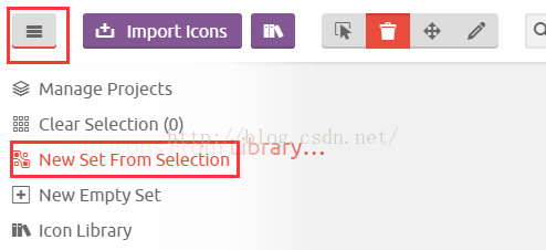 只需在网址: https://icomoon.io/app/ 上选择相应图标点击font设置,然后点击下载。将下载文件解压,然后将font文件夹和style.css拷贝到项目中,引用css即可,作为以后参考